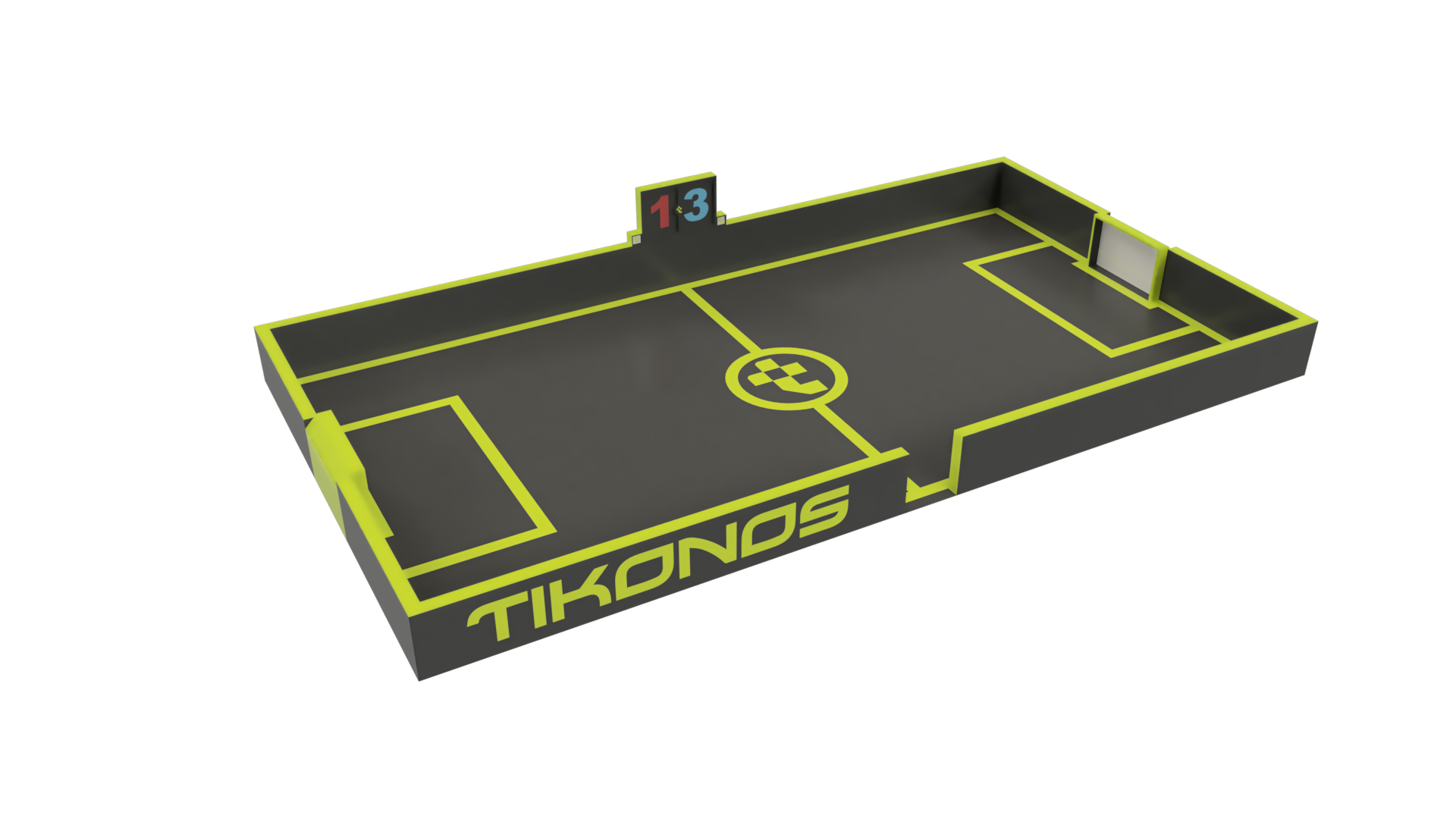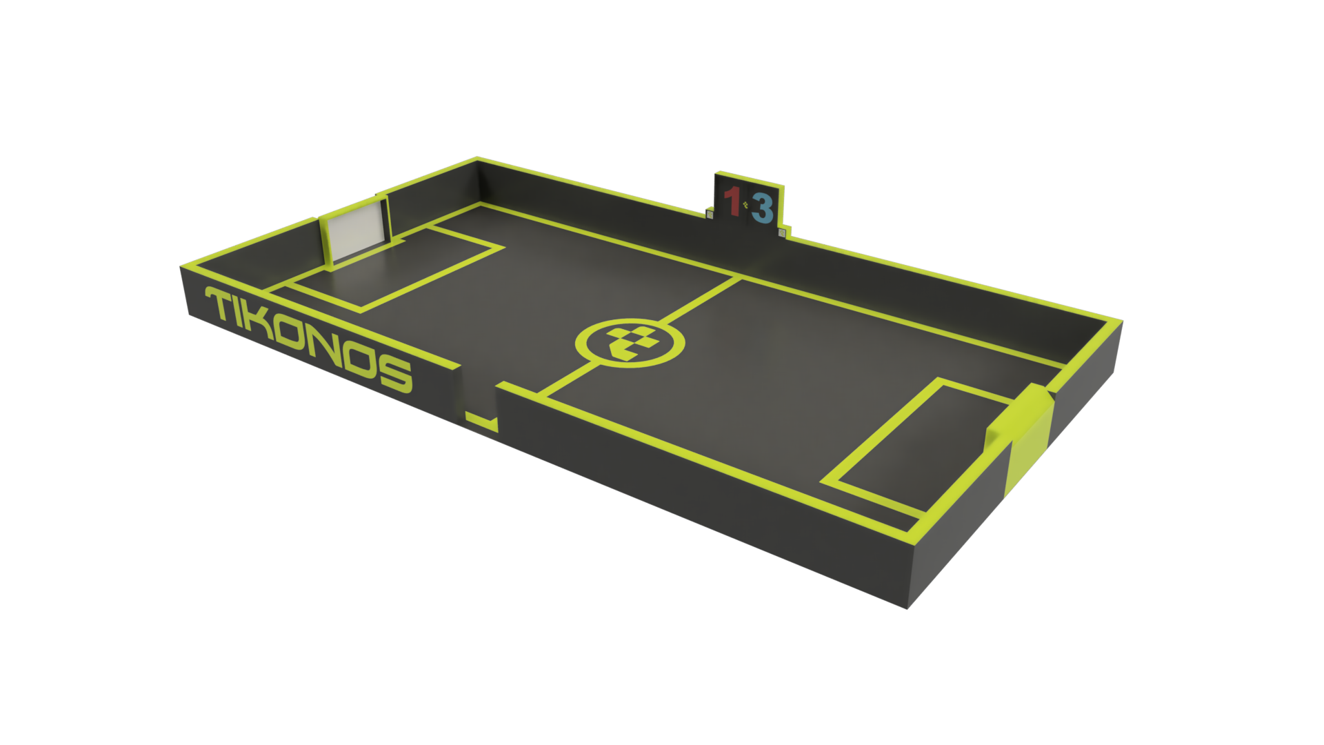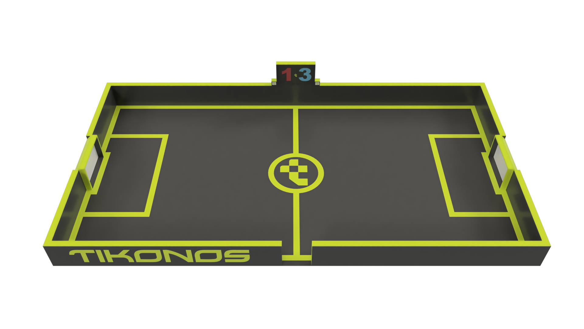 Tikonos Field F1 es un campo de fútbol reducido y consta de dos porterías, una en cada extremo. Estas porterías contienen unos sensores con tres luces y un marcador. El primer jugador en marcar 3 goles es el ganador.